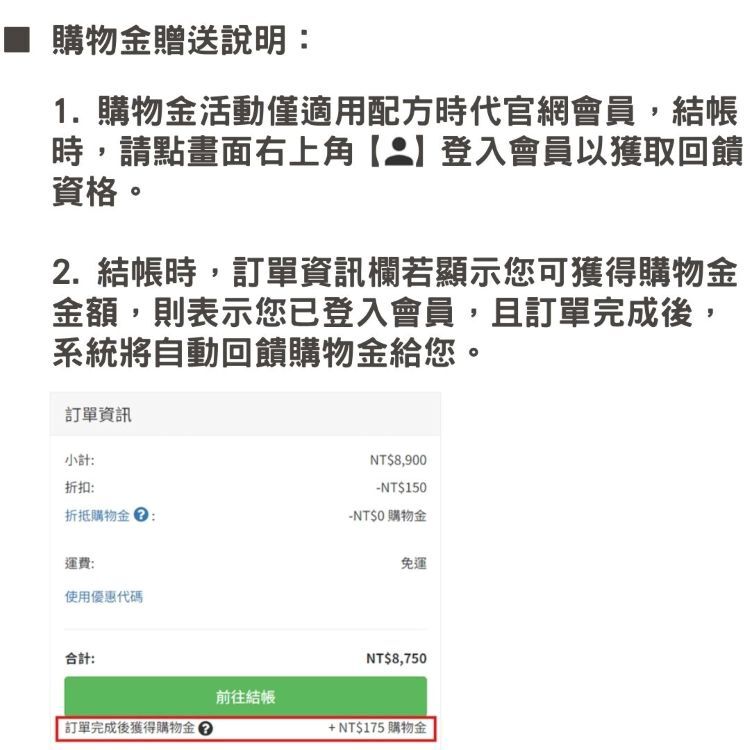 📌購物金活動僅適用於會員,結帳時請記得登入會員,才可以獲得回饋喔!